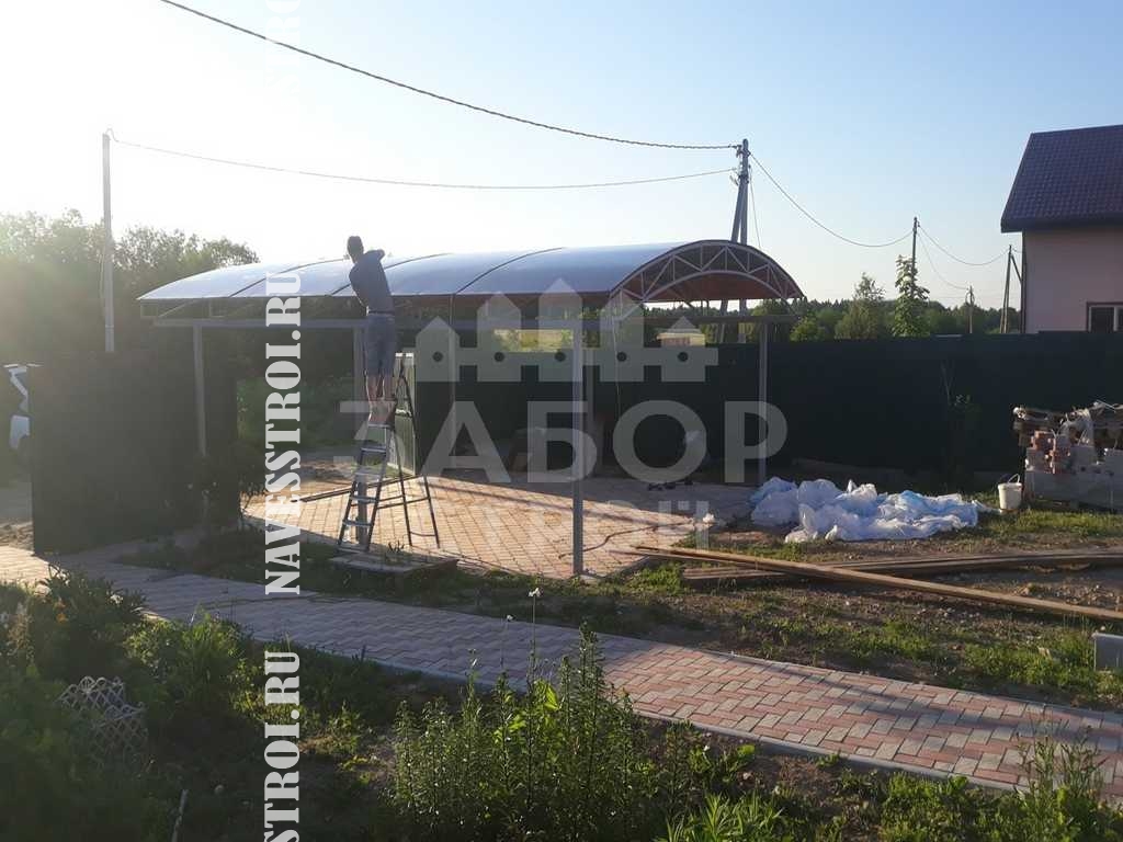 За день на даче изготовили арочный навес 5 на 7 с покрытием поликарбоната. Привезли уже готовые крашенные фермы и весь остальной материал. Все за собой убрали и увезли мусор. Молодцы!