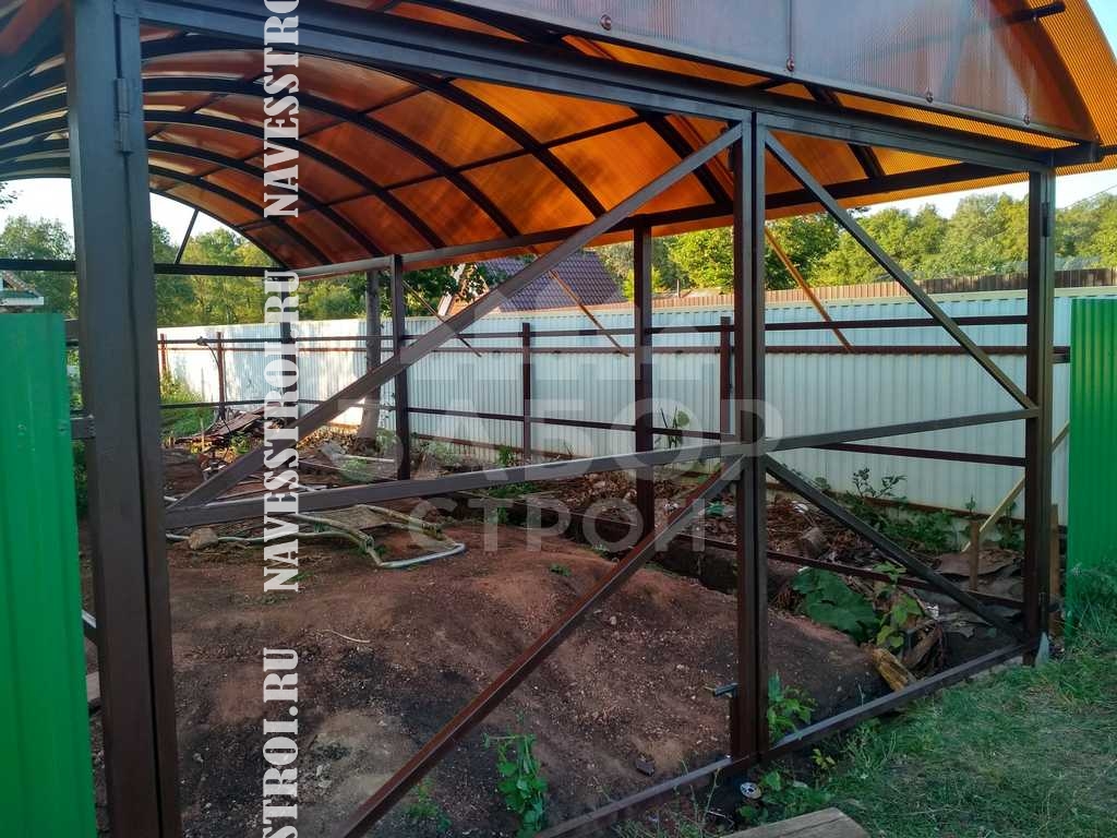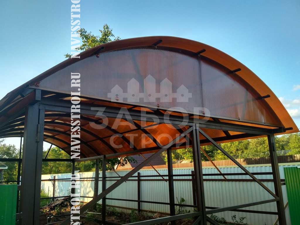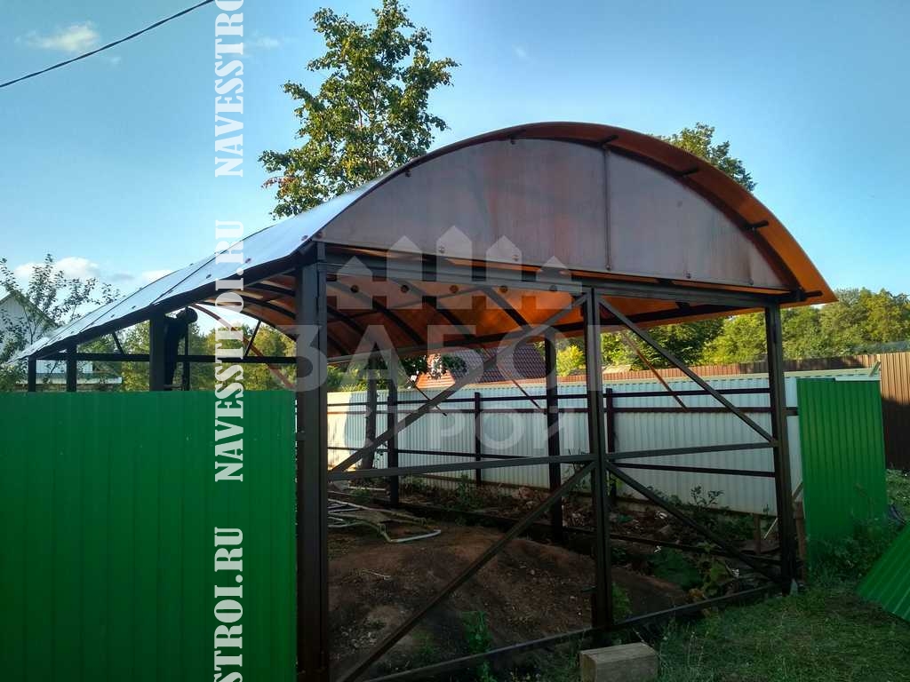 За день на даче изготовили арочный навес 5 на 7 с покрытием поликарбоната. Привезли уже готовые крашенные фермы и весь остальной материал. Все за собой убрали и увезли мусор. Молодцы!