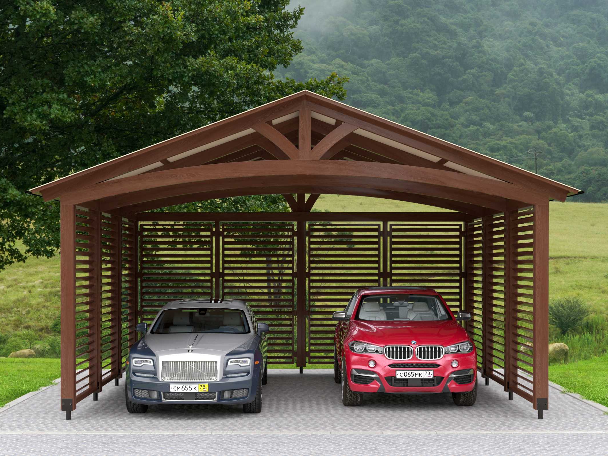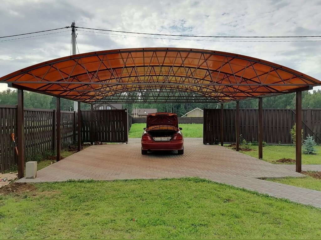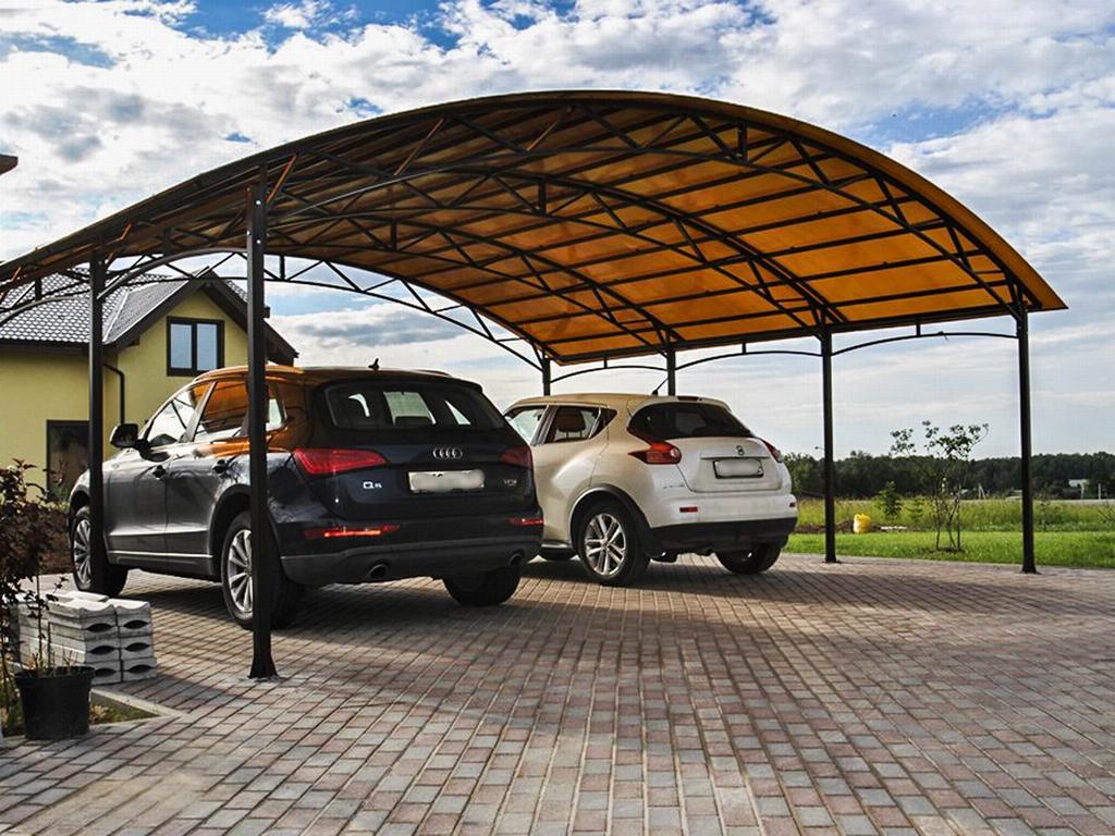 Поэтому компания "Навес Строй" настоятельно рекомендует не экономить, а усилить каркас навеса для двух автомобилей более жёсткими профилями с увеличенной толщиной металла и количеством несущих ферм.