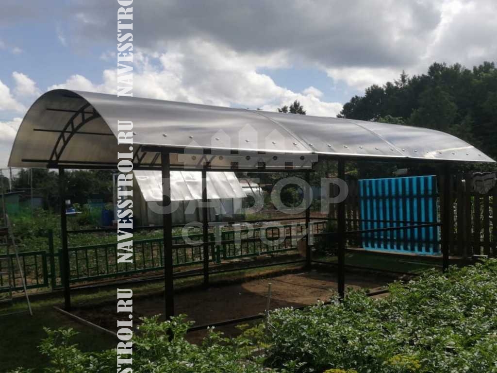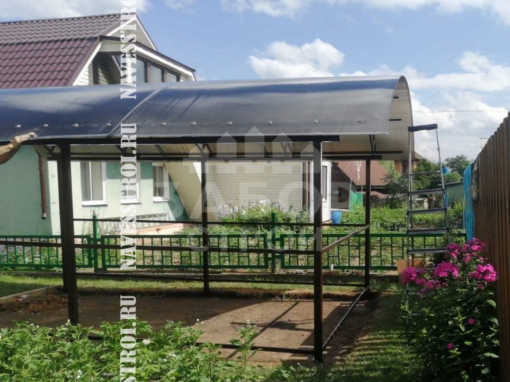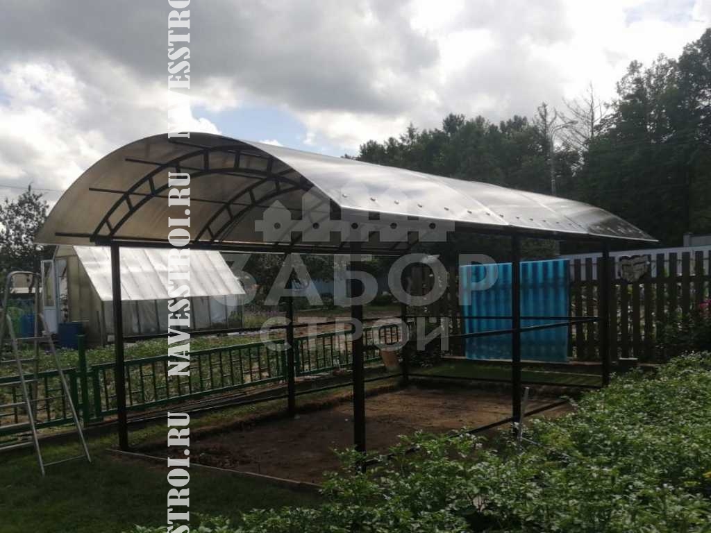 За день на даче изготовили арочный навес 5 на 7 с покрытием поликарбоната. Привезли уже готовые крашенные фермы и весь остальной материал. Все за собой убрали и увезли мусор. Молодцы!